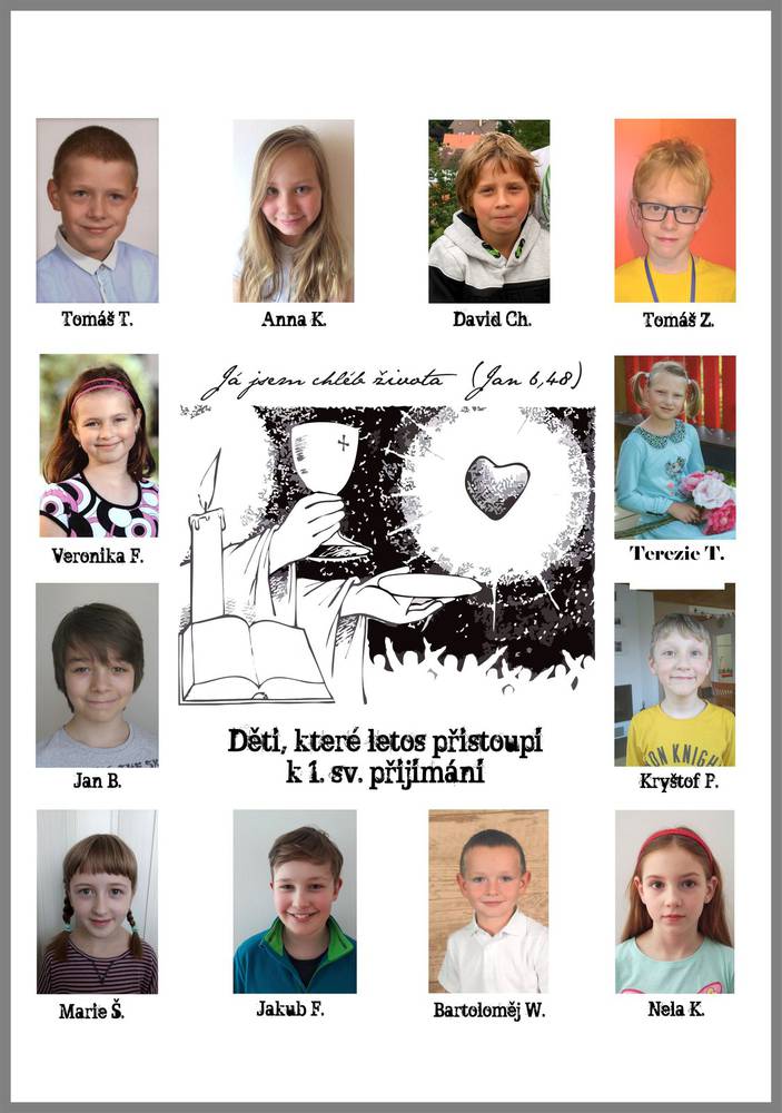 V letošním roce přistoupí dvanáct dětí 13. května při mši sv. v 10 hod. v Lobzích k prvnímu svatému přijímání. Naše společná modlitba ať jim pomáhá milovat Ježíše a žít s ním po celý život.